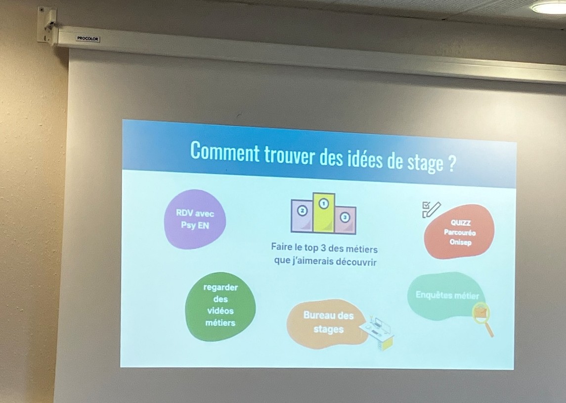 L’association Viens Voir Mon Taf, en partenariat avec le Bureau d’Information Jeunesse d’Échirolles, est intervenue auprès des élèves de 4e le mardi 24 février afin de les sensibiliser à la recherche de stage en classe de 3e. Les enjeux de l’année de 3e ainsi que les démarches liées à la recherche d’un stage en entreprise ont été présentés, avant un travail en ateliers.